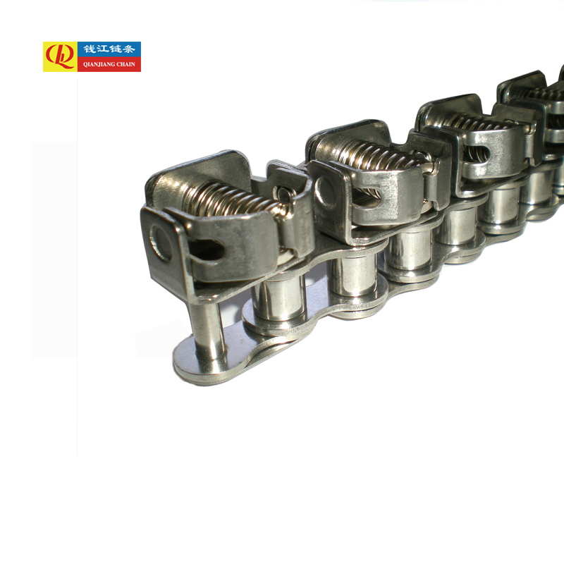 هذا هو الهيكل الأكثر شيوعا. أذرع التثبيت أو كتل التثبيت مصنوعة من الفولاذ الزنبركي. أثناء تشغيل السلسلة، تمارس قضبان التوجيه الخارجية أو الكامات ضغطًا، مما يؤدي إلى تشوه الأذرع بشكل مرن والإمساك بقطعة العمل. عندما تتحرك السلسلة إلى منطقة التحرير، تتم إزالة الضغط، ويتم فتح زنبرك الأذرع، ويتم تحرير قطعة العمل.