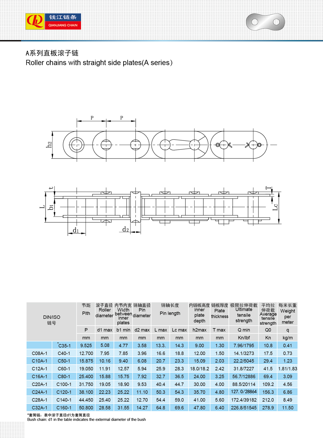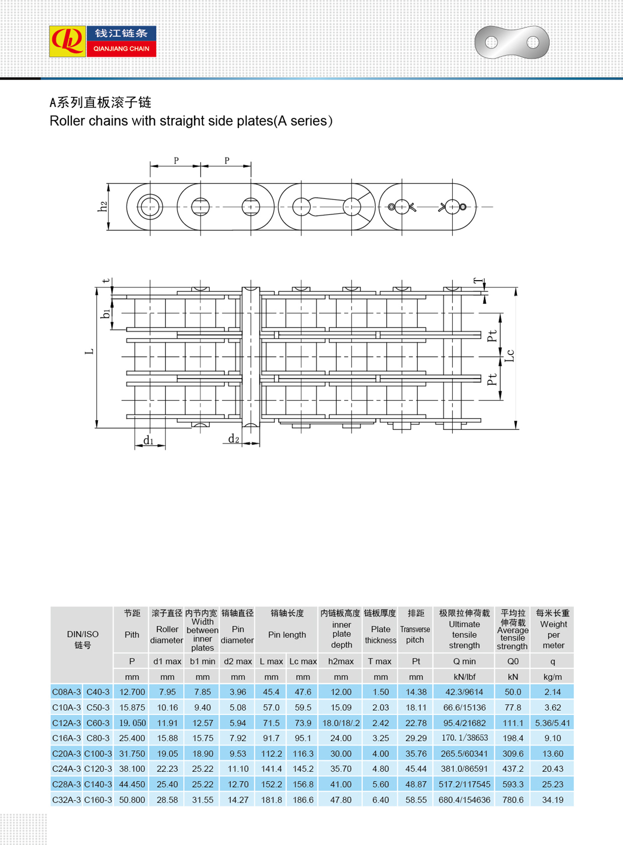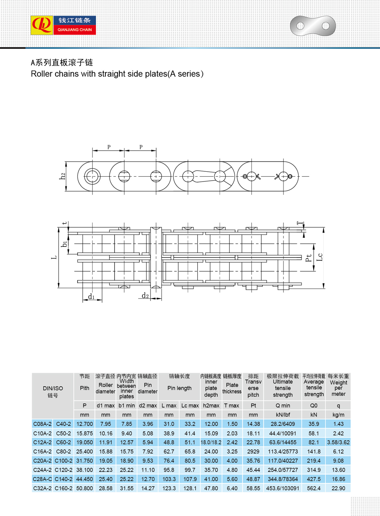 تم تصميم سلاسل الأسطوانة ذات الألواح الجانبية المستقيمة (سلسلة A) لضمان المتانة والكفاءة وسهولة الصيانة. تشتهر هذه السلاسل بتشغيلها منخفض الضوضاء، وتوفر أداءً سلسًا وهادئًا، مما يجعلها مثالية للبيئات التي يكون فيها تقليل الصوت أمرًا مهمًا. يتم اختيار المواد المستخدمة في بناء هذه السلاسل بعناية لقوتها العالية، مما يضمن أنها أقل عرضة للكسر، حتى في ظل الظروف الصعبة.