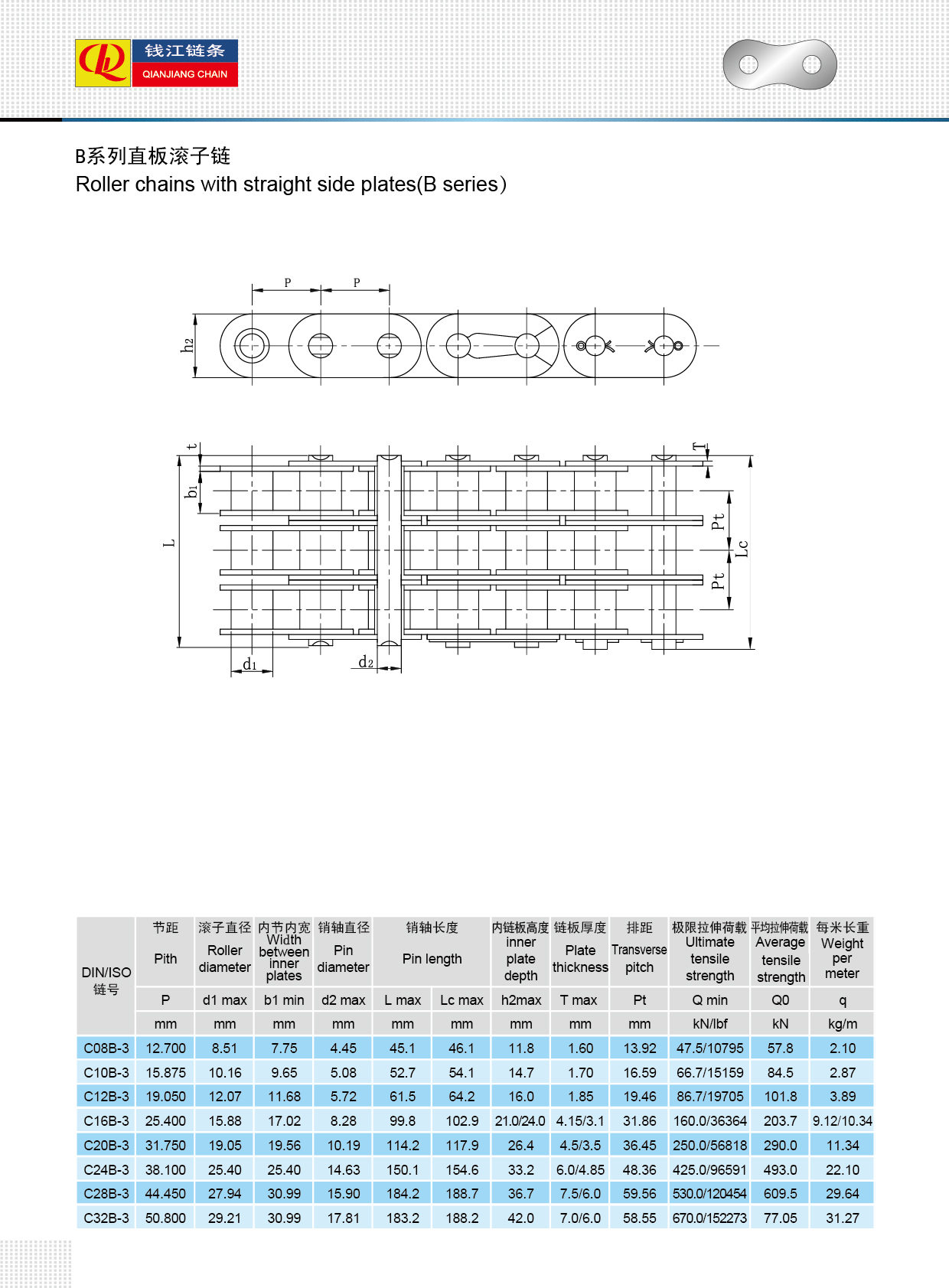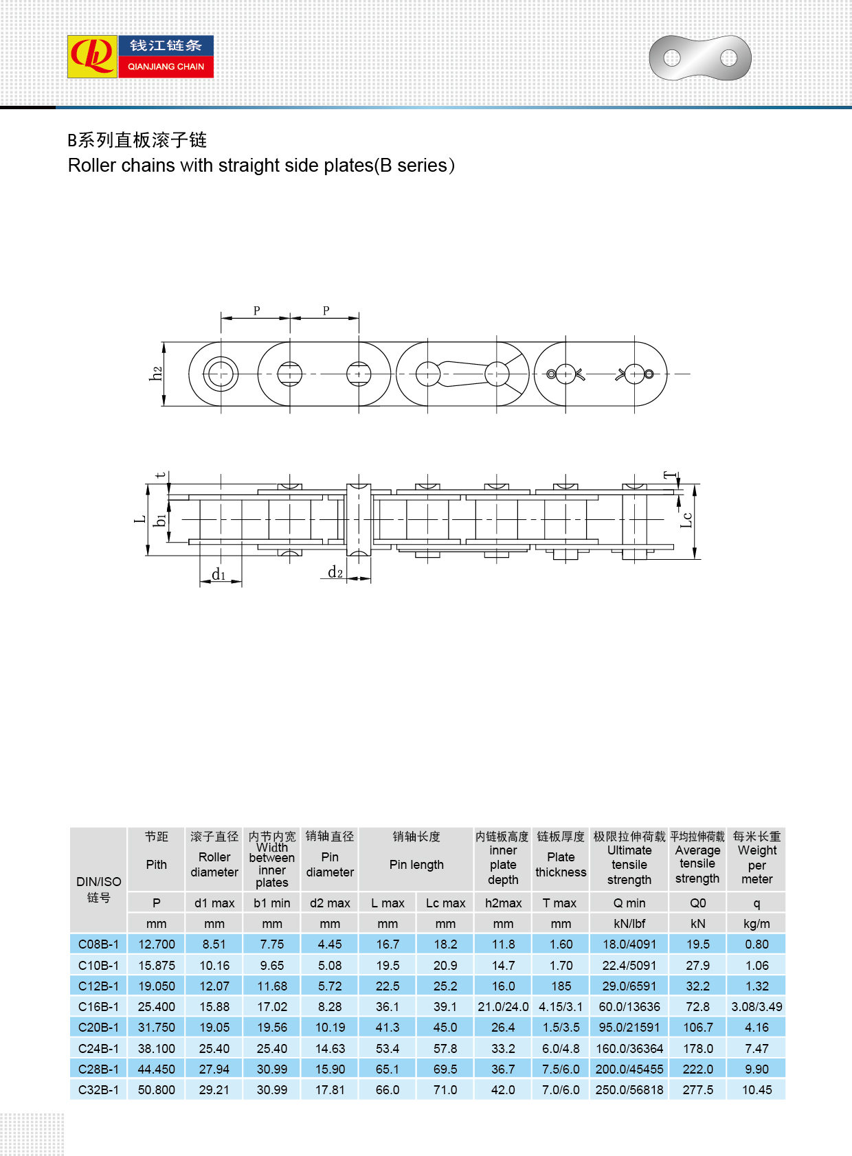 سلاسل الأسطوانة مع لوحة جانبية مستقيمة (سلسلة B)