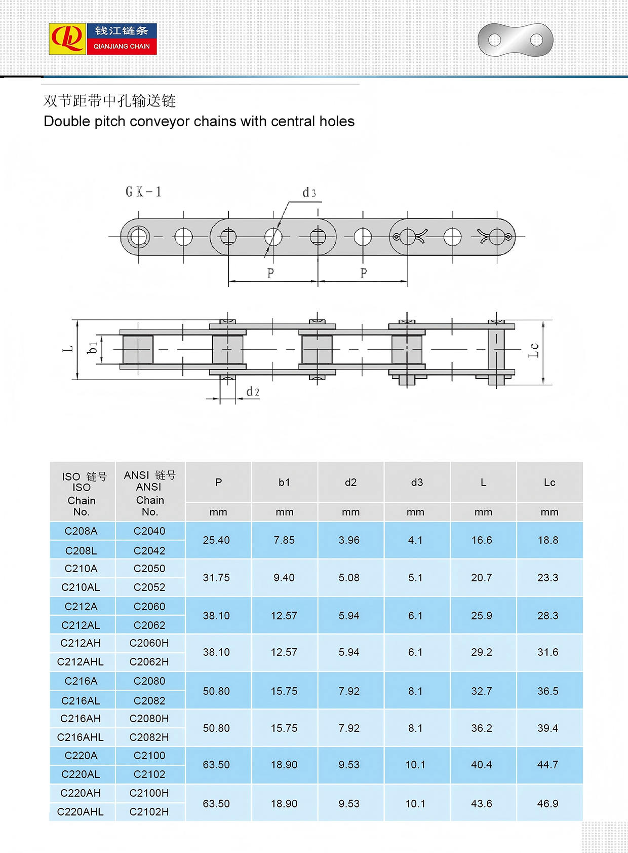 تعد سلاسل النقل ذات الخطوة المزدوجة المزودة بفتحات مركزية حلاً مبتكرًا مصممًا للتعامل الفعال مع المواد وتطبيقات النقل. تتميز هذه السلاسل بتصميمها الفريد، والذي يتضمن أبعادًا ممتدة وفتحات مركزية موضوعة بشكل استراتيجي. يعمل هذا التصميم على تقليل الوزن مع الحفاظ على قوة شد عالية، مما يجعلها مثالية لنقل المواد خفيفة الوزن وكبيرة الحجم لمسافات طويلة دون المساس بالأداء. تسمح الفتحات المركزية أيضًا بسهولة تركيب التركيبات أو الملحقات المخصصة، مما يعزز تنوع الاستخدامات في مختلف الصناعات.