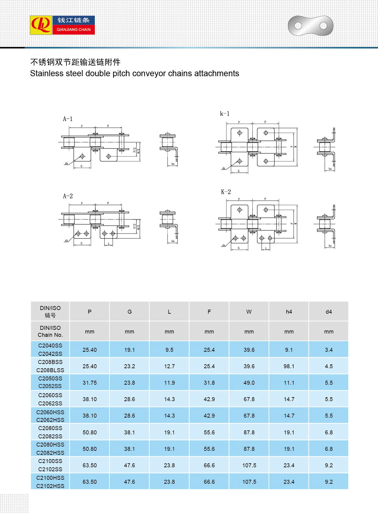 مرفقات سلاسل ناقلة مزدوجة من الفولاذ المقاوم للصدأ