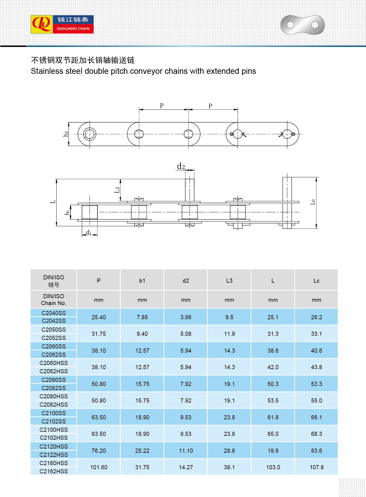 سلاسل ناقلة مزدوجة من الفولاذ المقاوم للصدأ مع دبابيس ممتدة