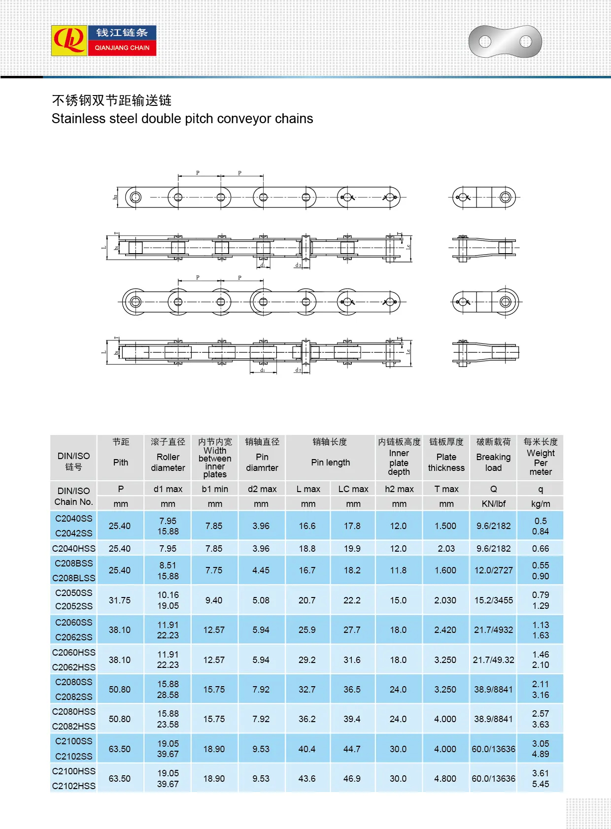 سلاسل ناقلة مزدوجة من الفولاذ المقاوم للصدأ