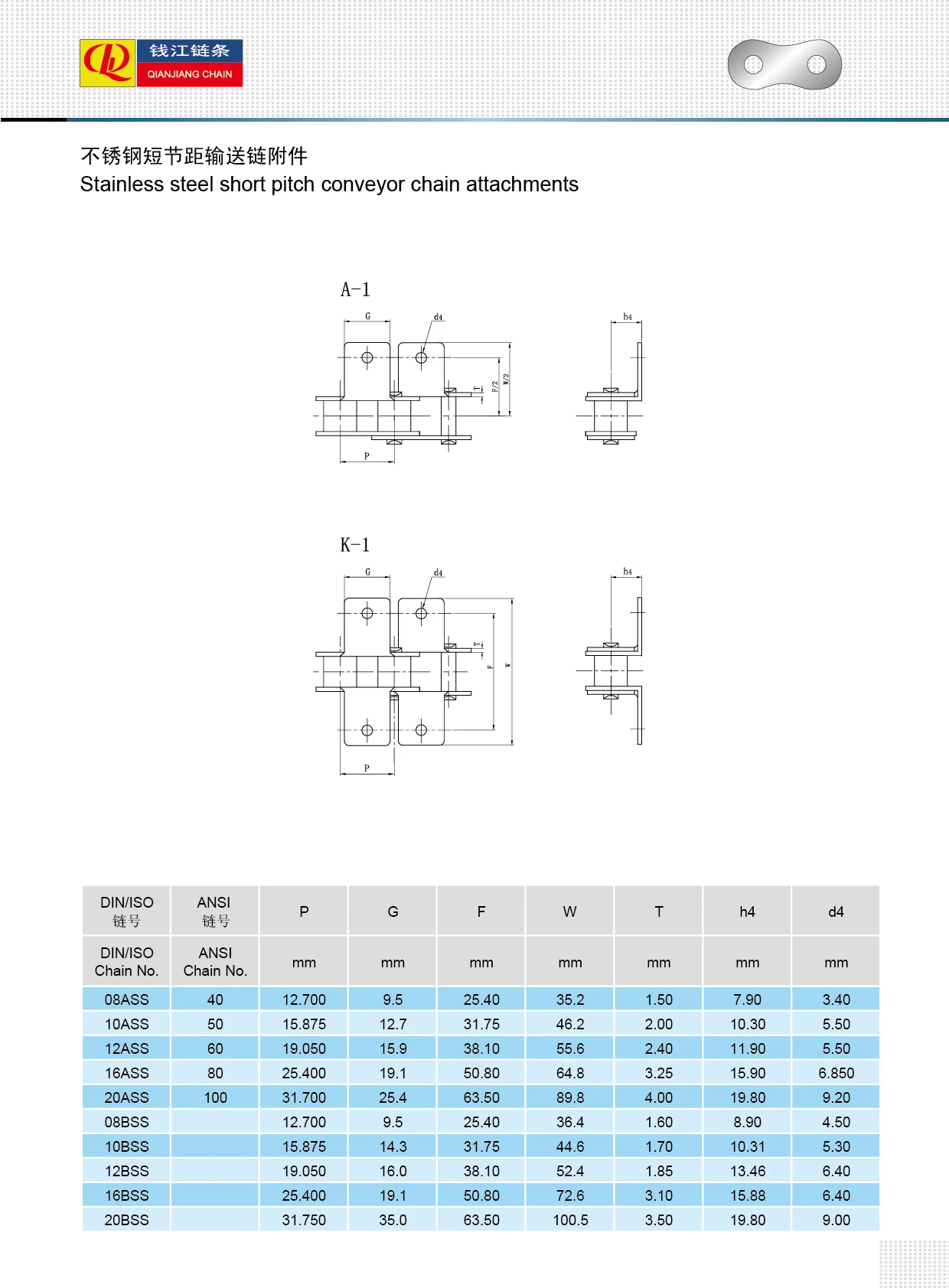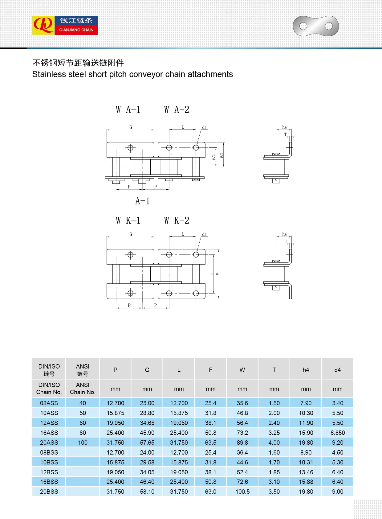 ملحقات سلسلة الناقل قصيرة المدى من الفولاذ المقاوم للصدأ